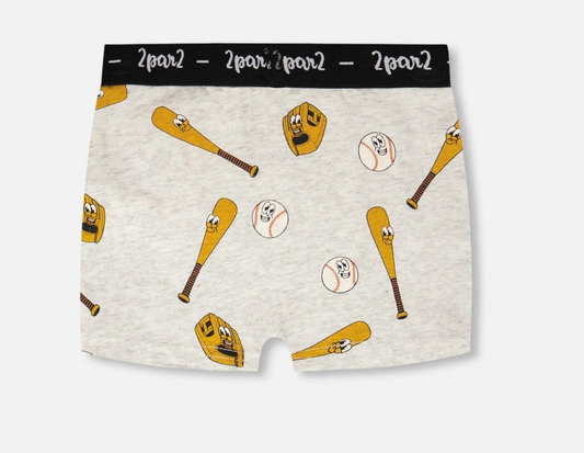 Organic Cotton Boxer | Grey Baseball Print | Deux Par Deux