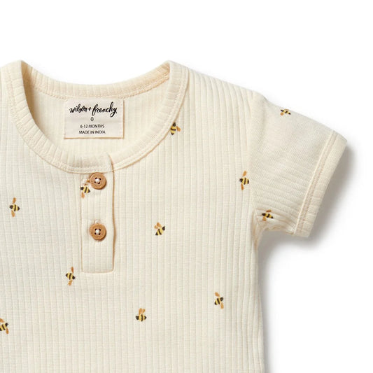 Bee Mine Organic Henley Bodysuit | Wilson + Frenchy