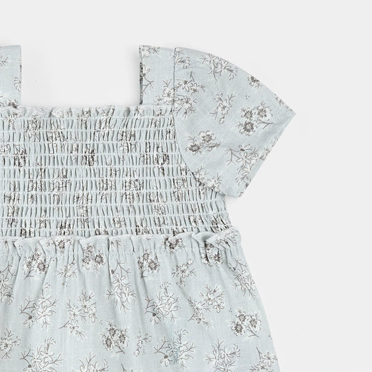 2 Piece Dress & Bloomer Set | Floral Print on Powder Blue | Petit Lem