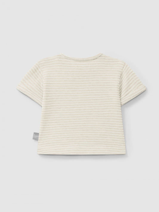 Cotton striped T-shirt with ruffled collar | Peach | Snug