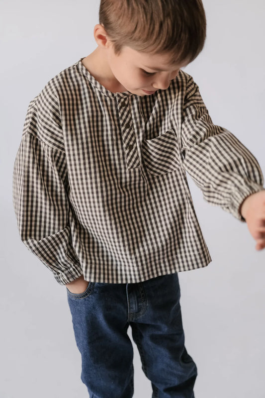 Gingham Long Sleeve One-Piece | Indigo | Pehr
