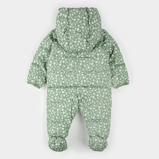 Hooded Baby Snowsuit | Floral Print on Sage Green | Petit Lem