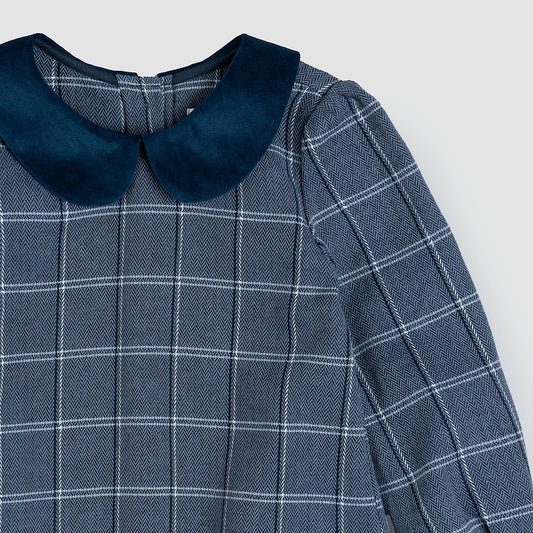 Navy Plaid Tweed Collared Dress | Miles The Label