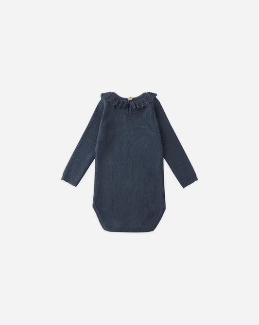 Ruffle Collar Bodysuit | Navy | Rylee & Cru