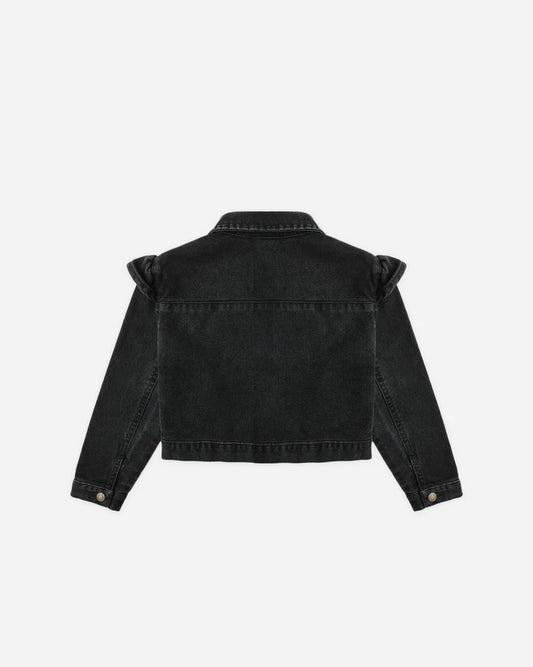 Ruffle Denim Jacket | Washed Black | Rylee & Cru