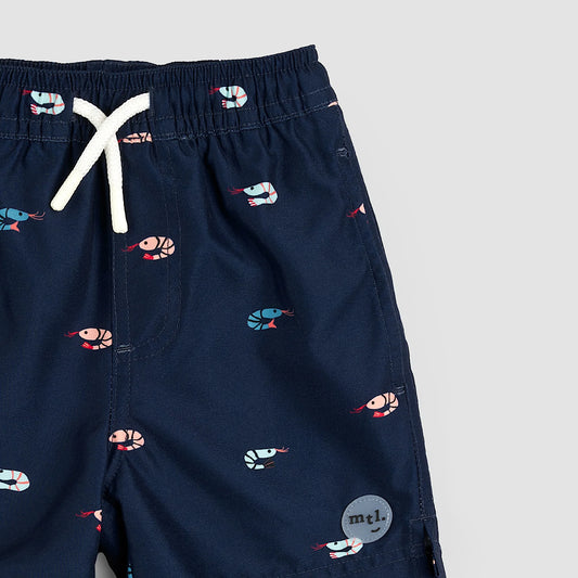 Shrimp Print on Dress Blues Swim Trunks | Miles The Label