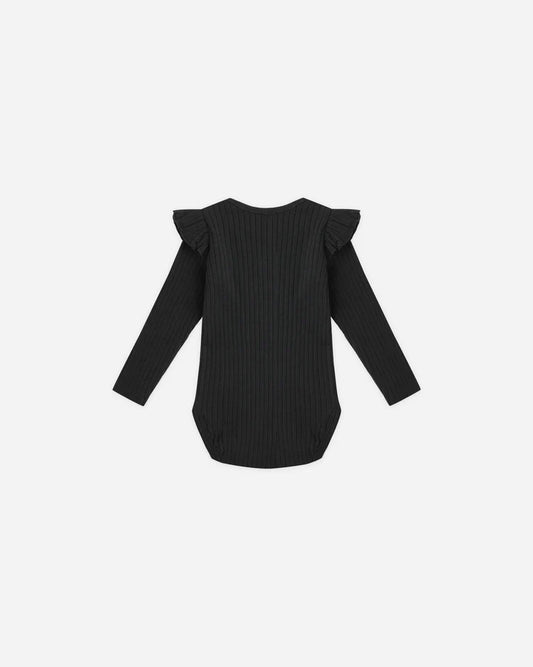 Shoulder Ruffle Bodysuit | Black | Rylee & Cru