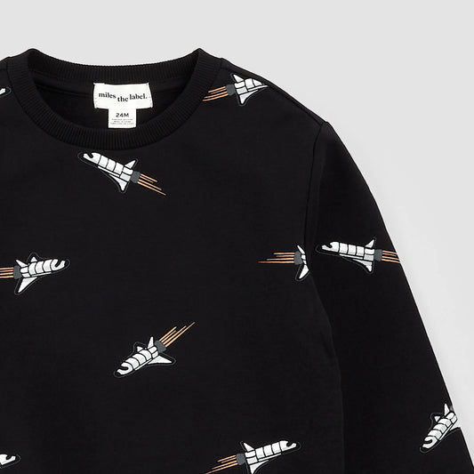 Space Shuttle Print on Black Sweatshirt | Miles The Label