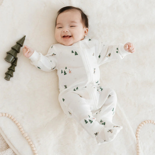 Winter Fun Print on Off-White Sleeper | Petit Lem