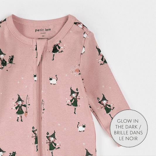 Witch Glow in the Dark Print on Pink Sleeper | Petit Lem