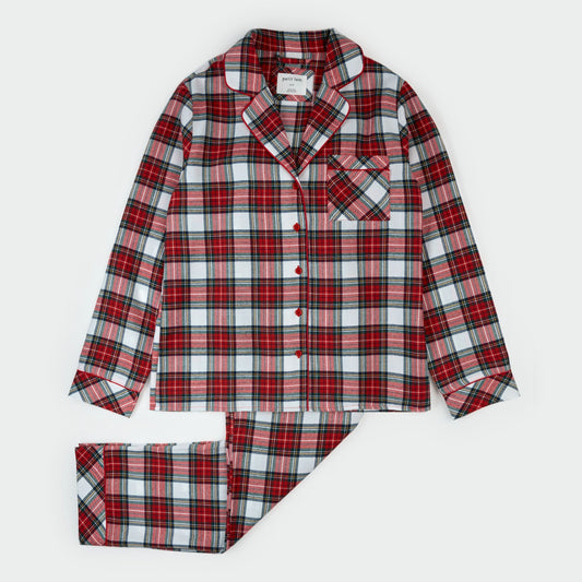 Women 2pc Flannel PJ Set | Red Tartan Plaid | Petit Lem