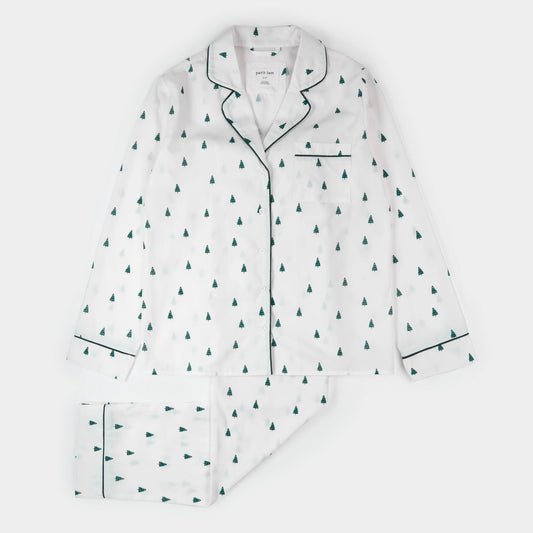 Women 2pc Poplin PJ Set | Pine Tree Print on Off-White | Petit Lem