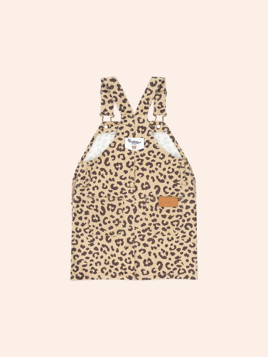 Very Cherry Leopard Print Denim Pinafore | Animal | Huxbaby