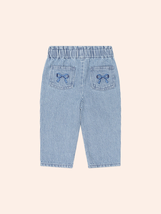 Vintage Bow Paperbag Denim Pants | Blue stripe | Huxbaby