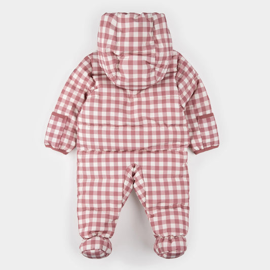 Hooded Baby Snowsuit | Plum Gingham | Petit Lem