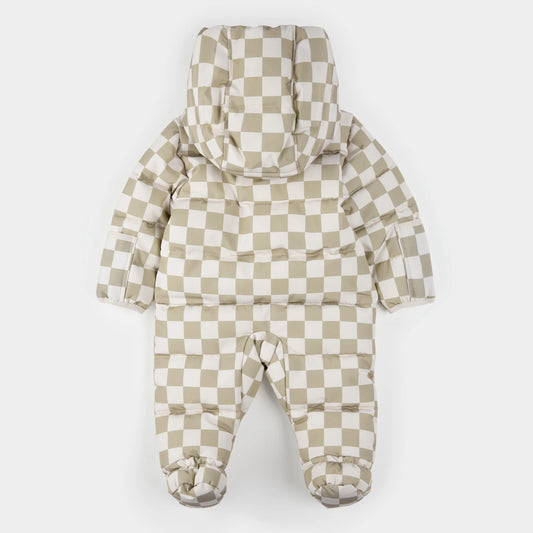 Hooded Baby Snowsuit | Crème Checkerboard | Petit Lem