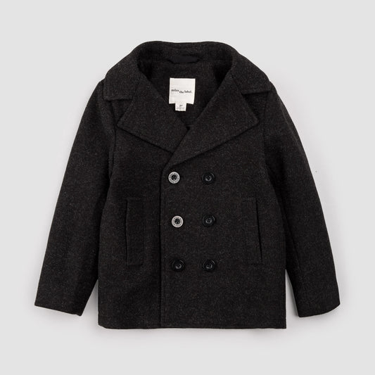 Hooded Woven Pea Coat | Dark Heather Grey | Miles the Label