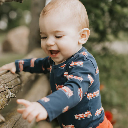 2 PC Quilted Jersey Set | Fire Truck Print on Grey | Petit Lem
