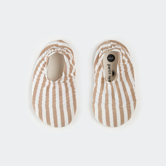 Swim Slippers | Taupe Stripe Seersucker | Petit Lem