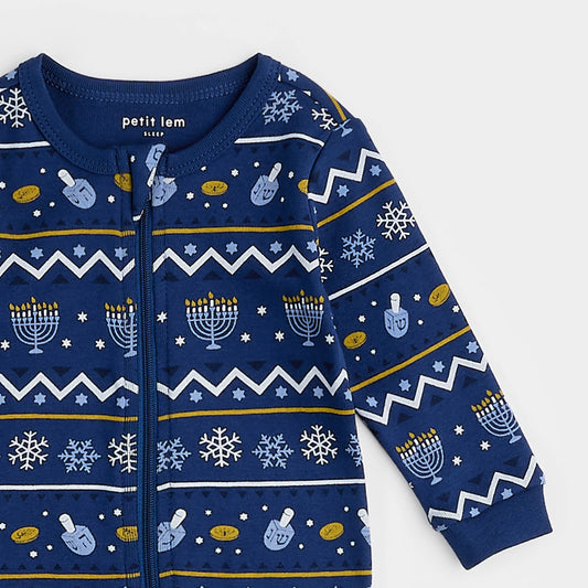 Hanukkah Fair Isle Print Sleeper | Petit Lem