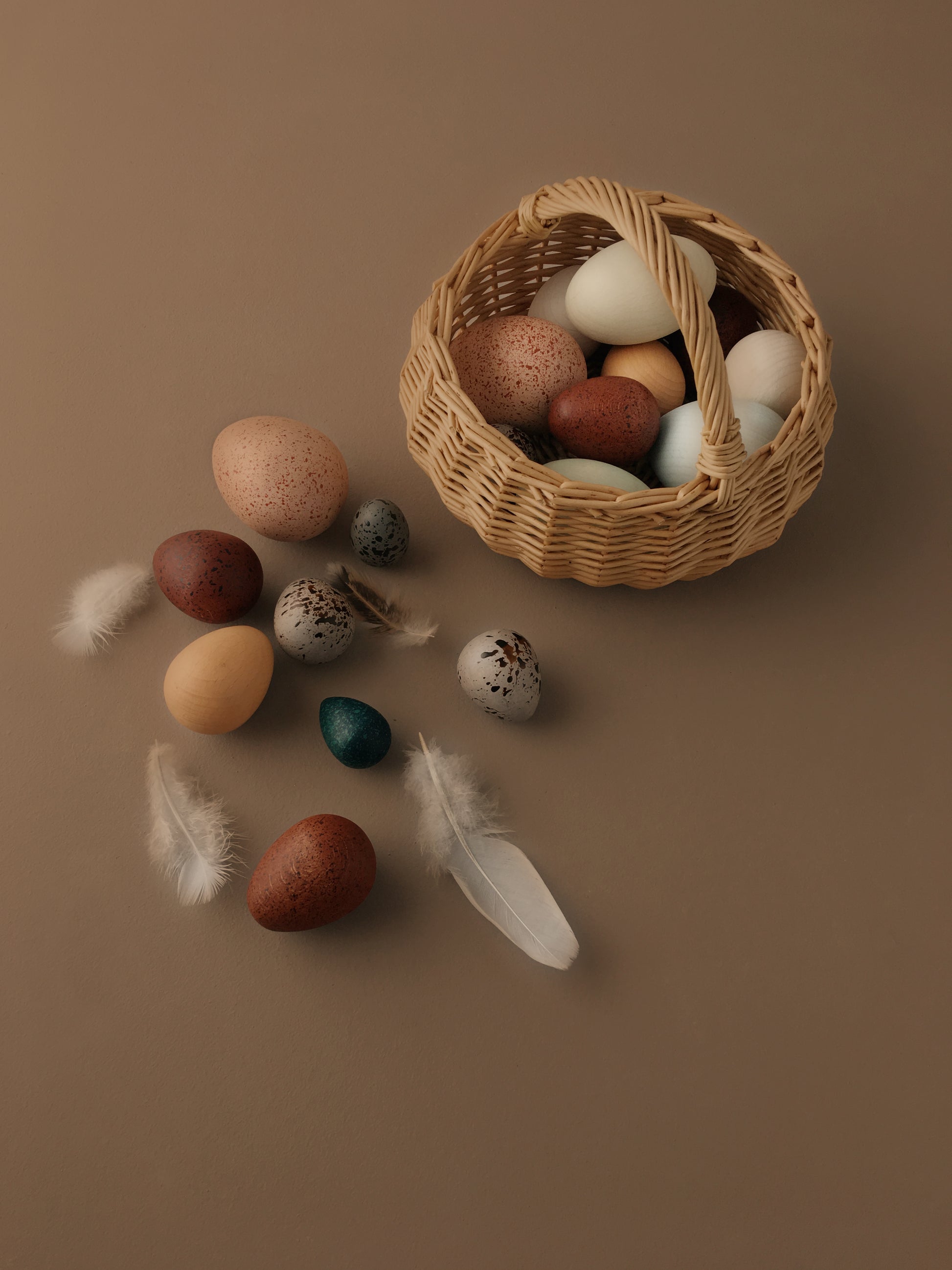 This beautiful wooden toy set is perfect for little hands to hold, roll, count and put in and out of the basket. Sort them by sizes and observe the lovely colours and speckles.