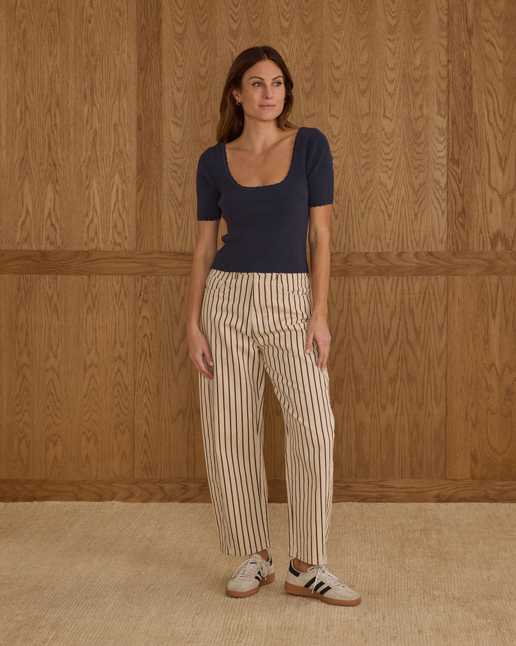 Barrel Pant | Burgundy Pinstripe | Rylee & Cru