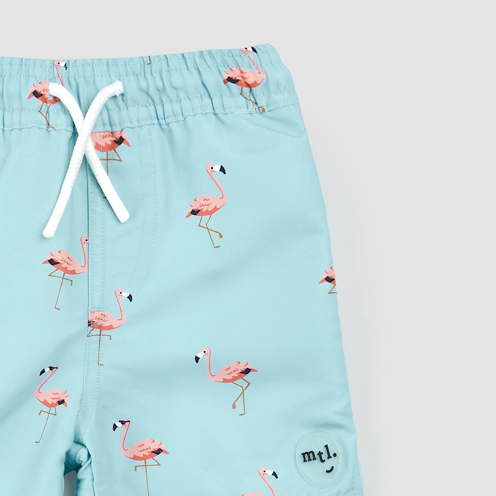 Flamingo Print on Canal Blue Swim Trunks | Miles The Label