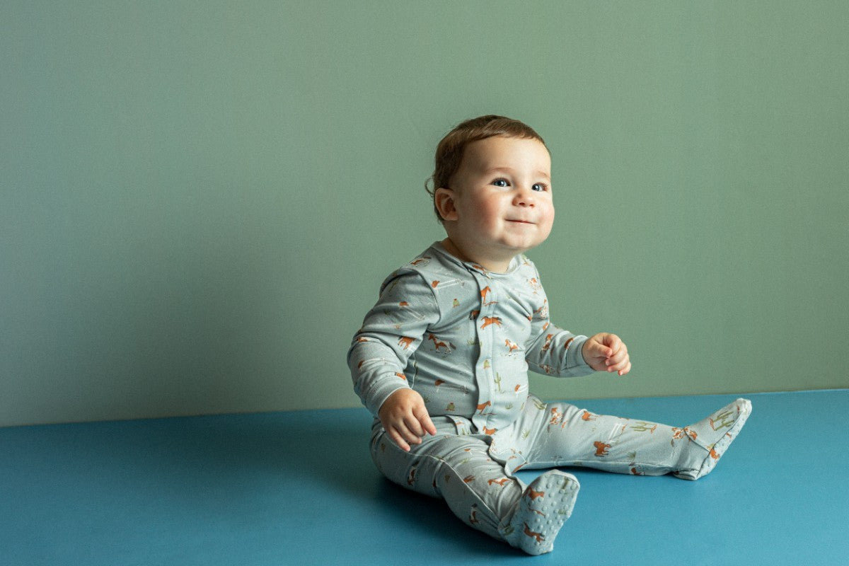 Baby's foot stays where it belongs! The fit is snug on sizes 12m and 18m, and no flame retardant chemicals are used. The fabric is the softest Tencel ™modal which is not only lightweight, breathable and hypoallergenic, its production process is sustainable, helping to minimize environmental impact.