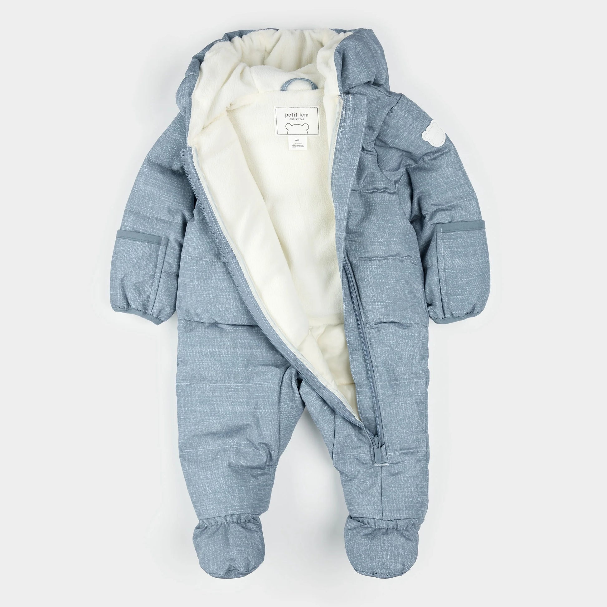 Hooded Baby Snowsuit | Dusty Blue | Petit Lem