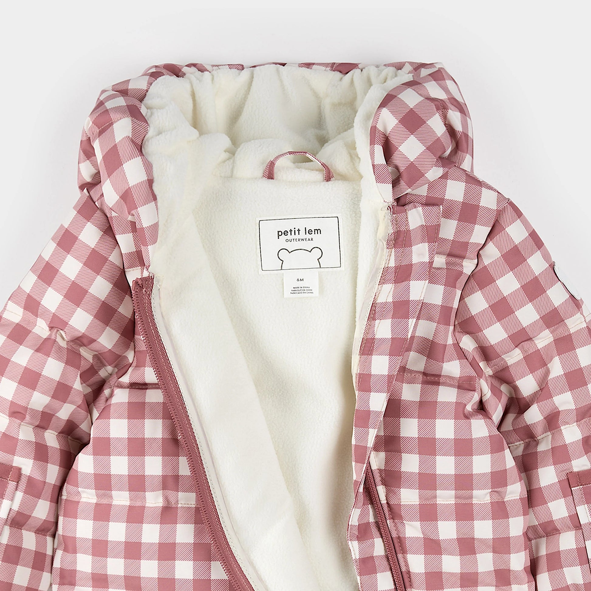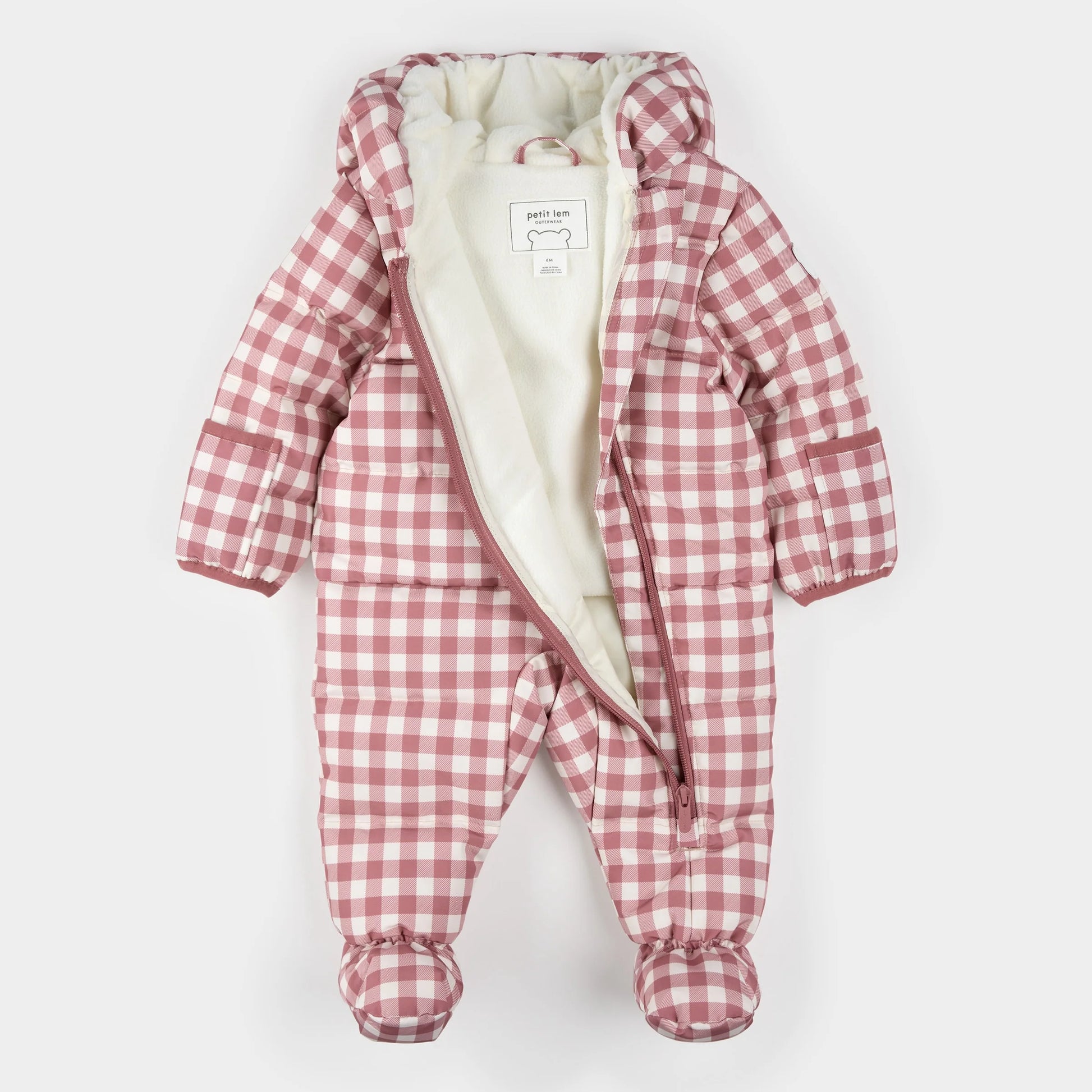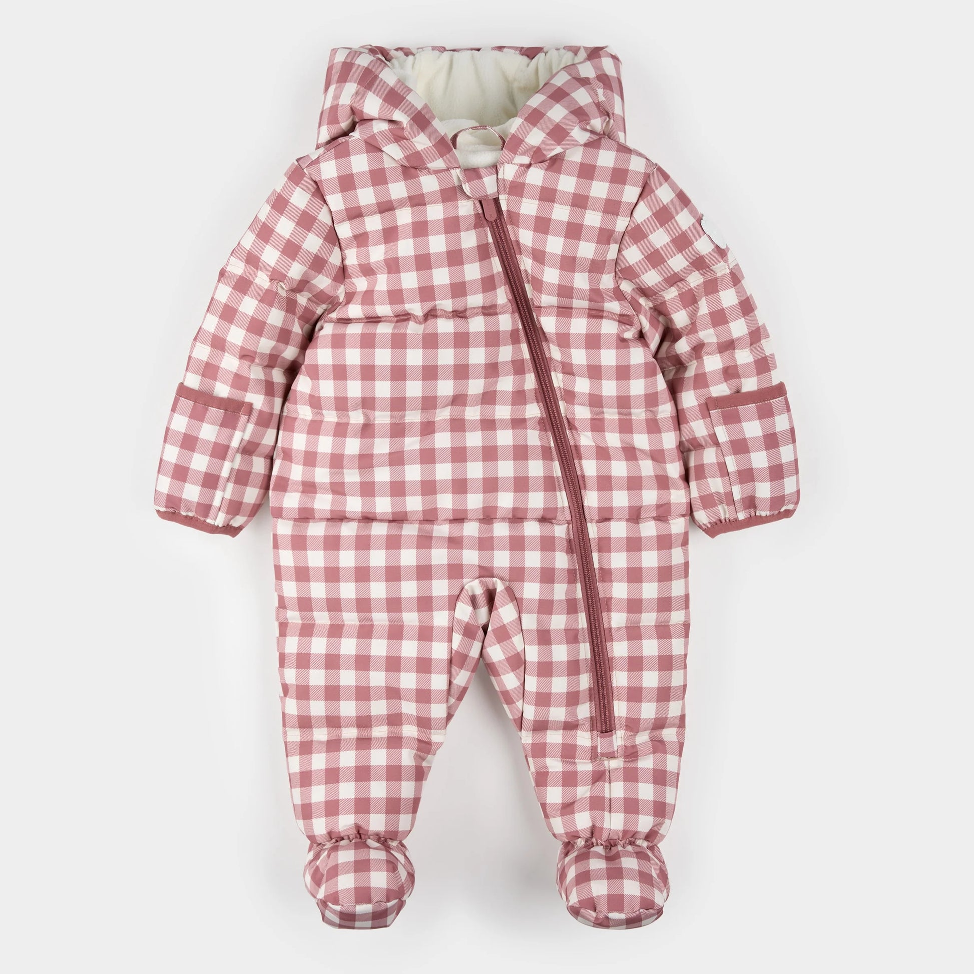Hooded Baby Snowsuit | Plum Gingham | Petit Lem