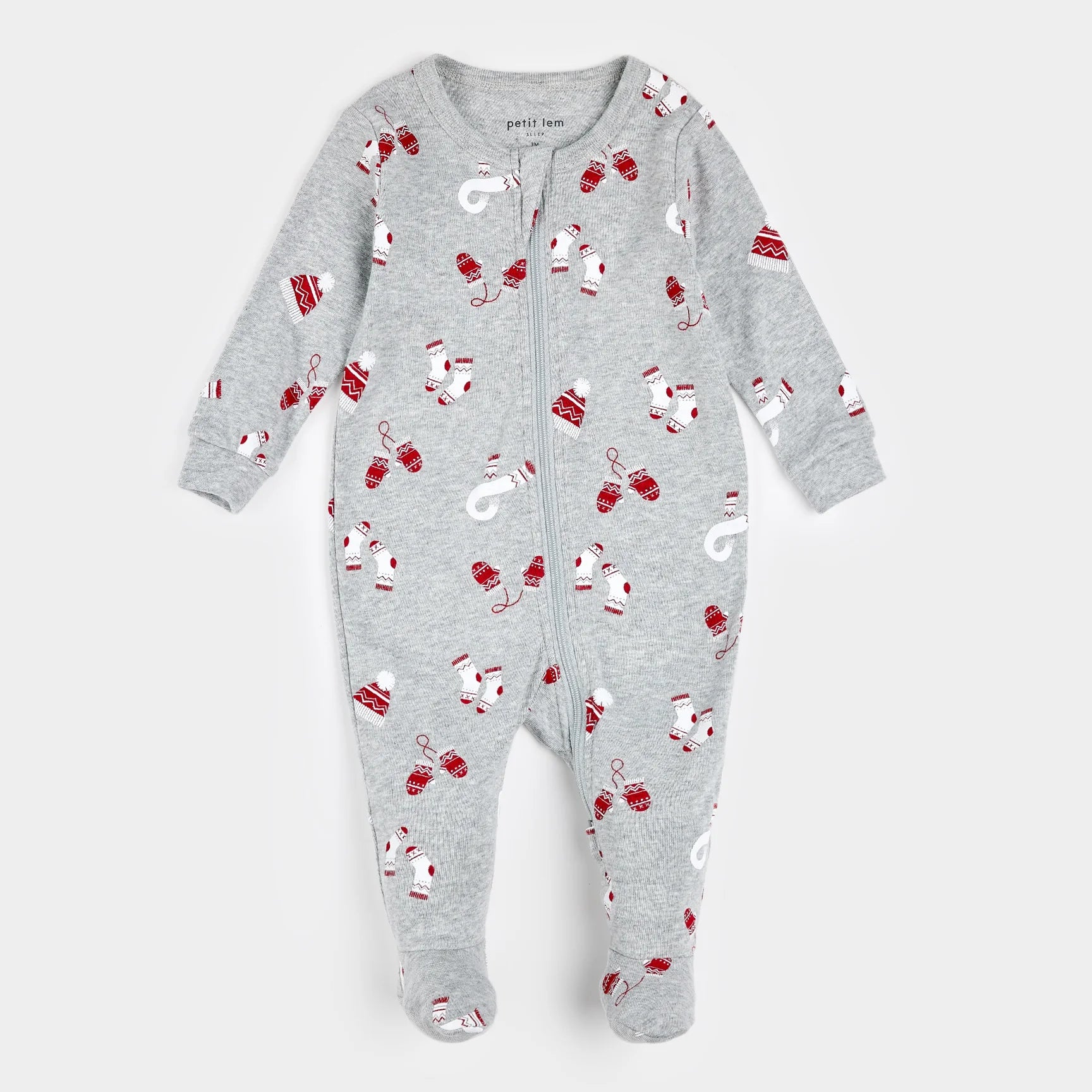 Knits and Pieces Print on Heather Grey Sleeper | Petit Lem