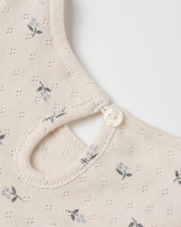 This long sleeve dress in our classic pointelle fabric features delicate V-ruffle detail, a button-back closure for easy changing, and matching bloomers for a sweet finishing touch.