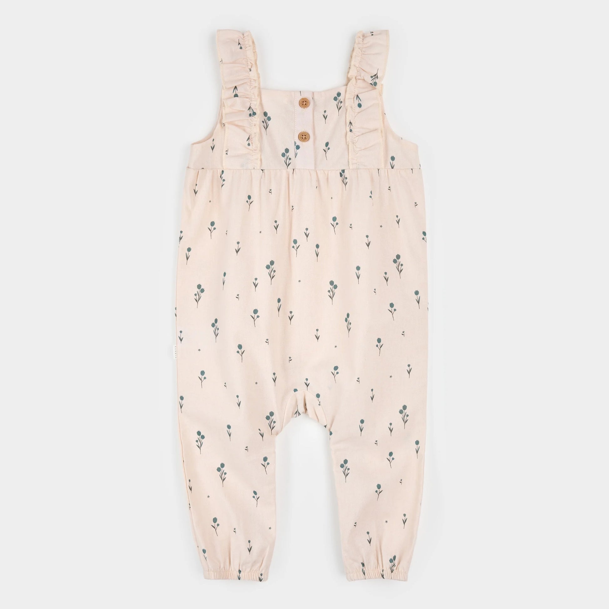 Let her twirl, toddle, wiggle and giggle in this easy breezy romper featuring our Blue Tulips print. The romper has elastic along the ankles to create a puffy fit that lets the air flow through to keep her cool on warm-weather adventures. Flutter sleeves add an extra special feel to the piece while a back button placket ensures dressing is fuss-free. Made for sunlit strolls and sweet afternoons as the flowers begin to bloom.