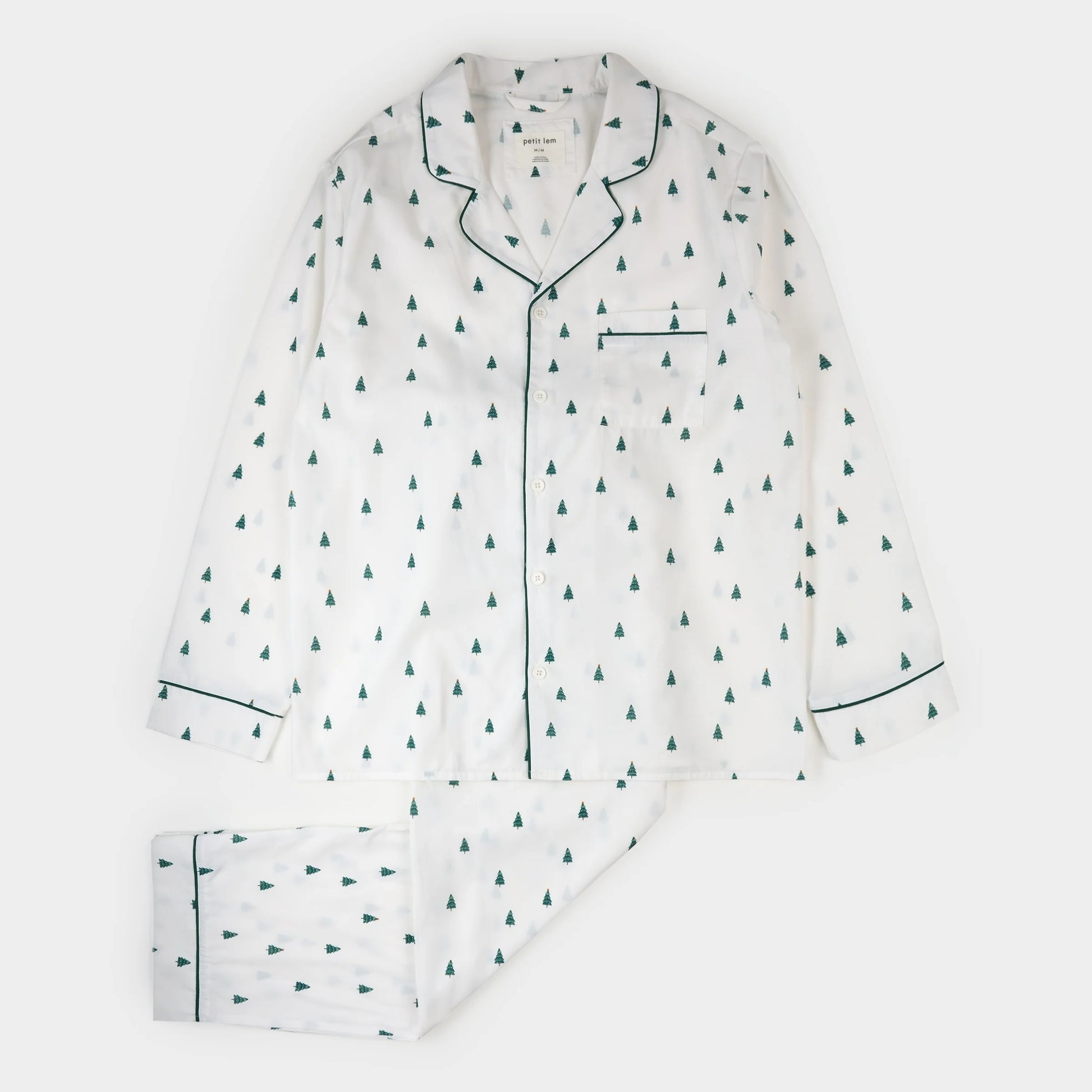 Men 2pc Poplin PJ Set | Pine Tree Print on Off-White | Petit Lem