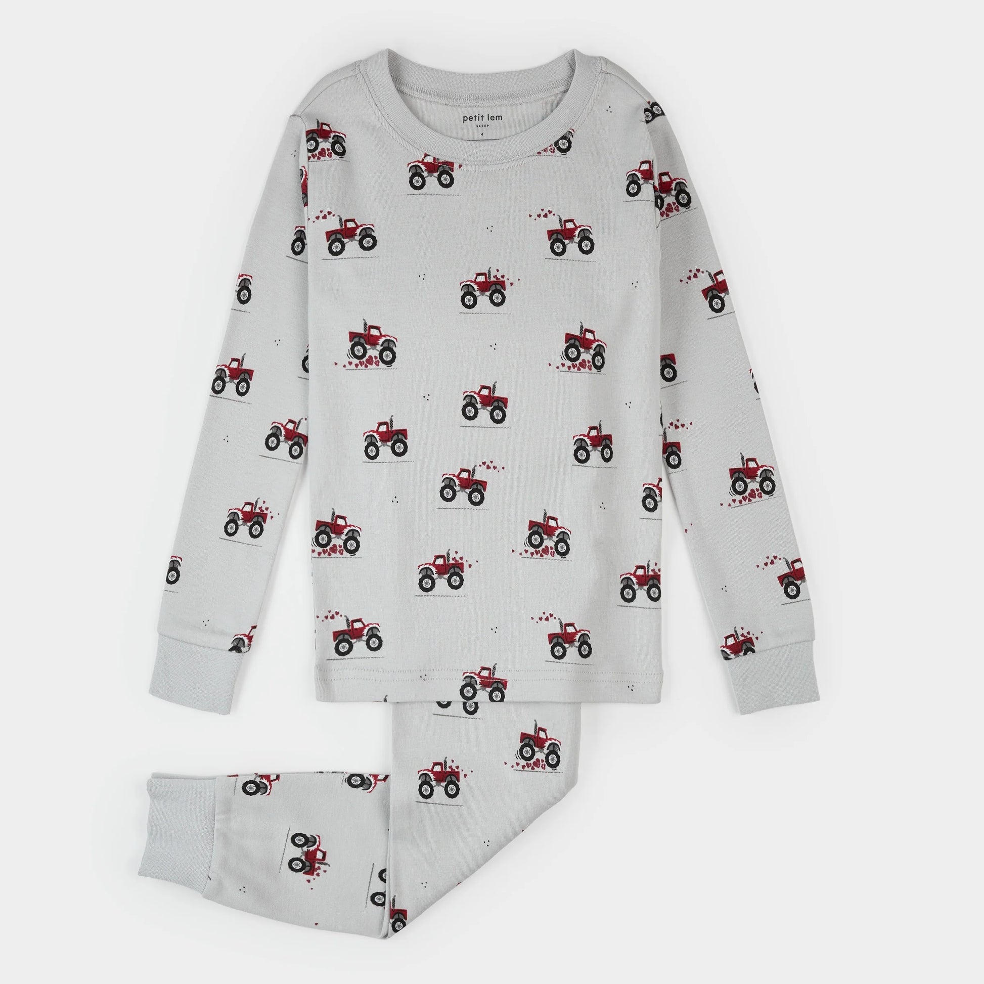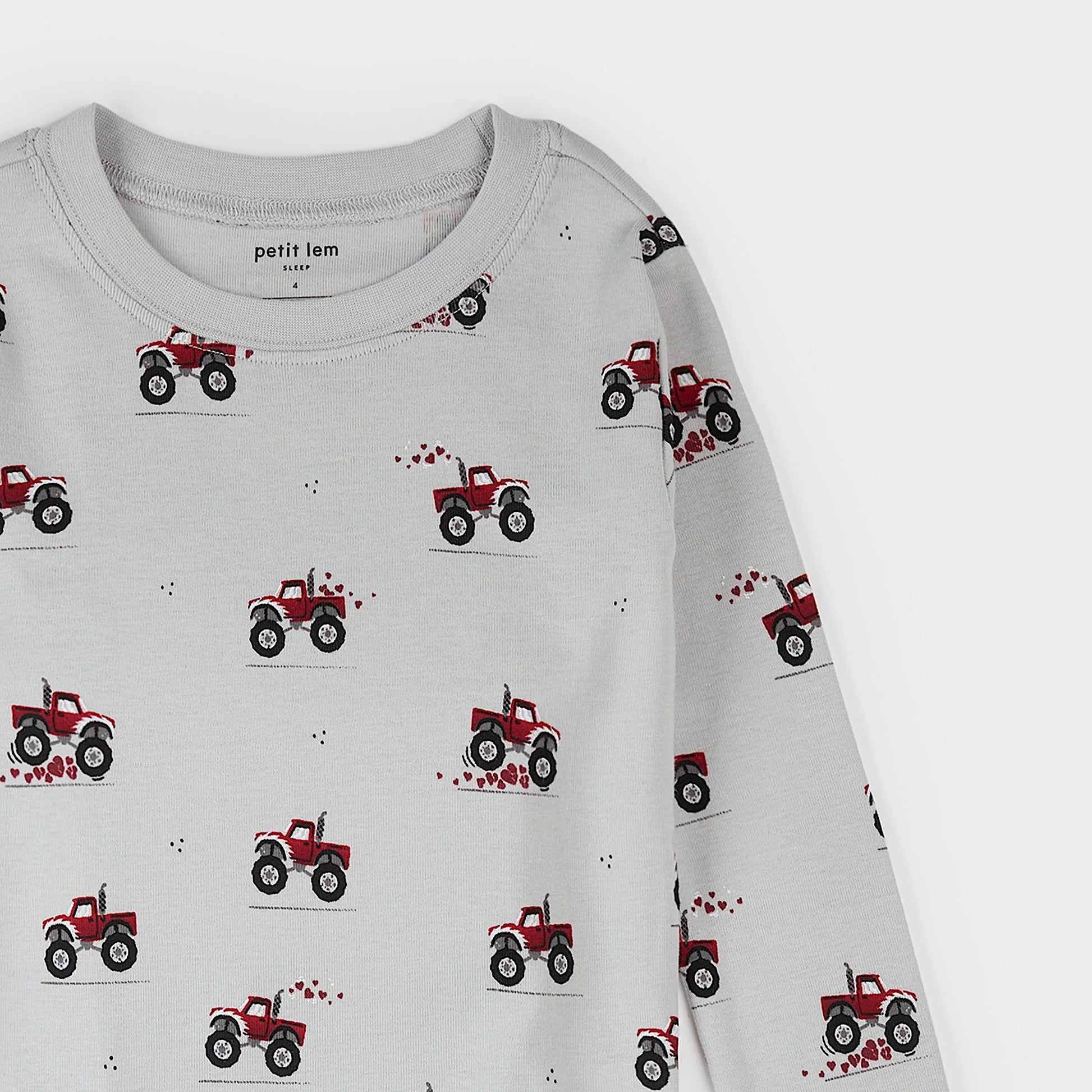 Monster Truck Love Print on Lunar Rock PJ Set | Petit Lem