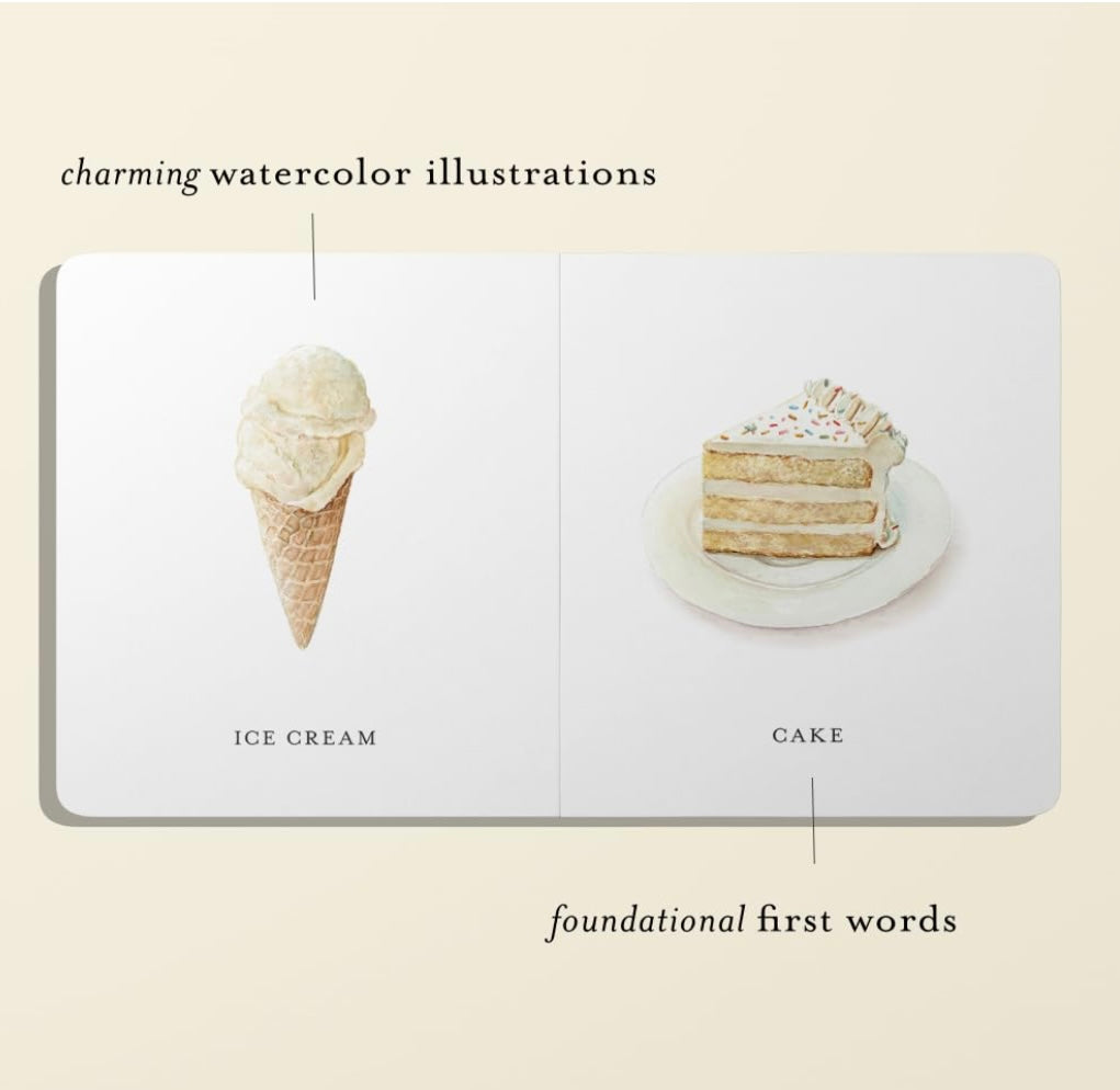 Designed by a professional watercolor artist and licensed speech therapist, Our Little Library Vol. 2 includes five new board books that feature charming watercolor illustrations and foundational first words that will help you build your child's vocabulary. The durable materials and small book size also make them perfect for your baby's little hands.