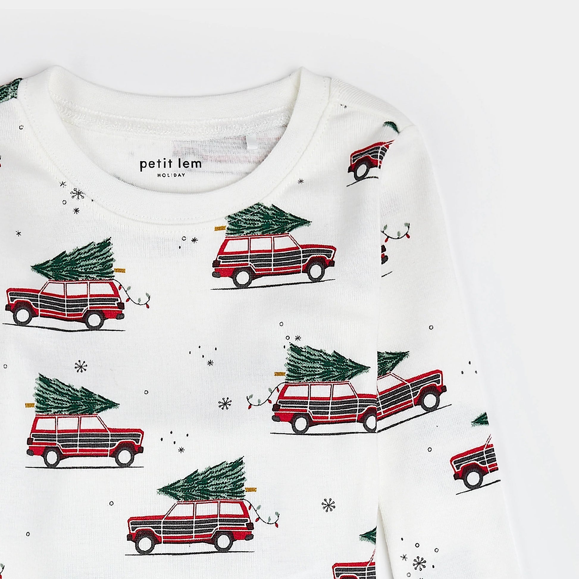 PJ Set | Festive Cars on Off-White | Petit Lem