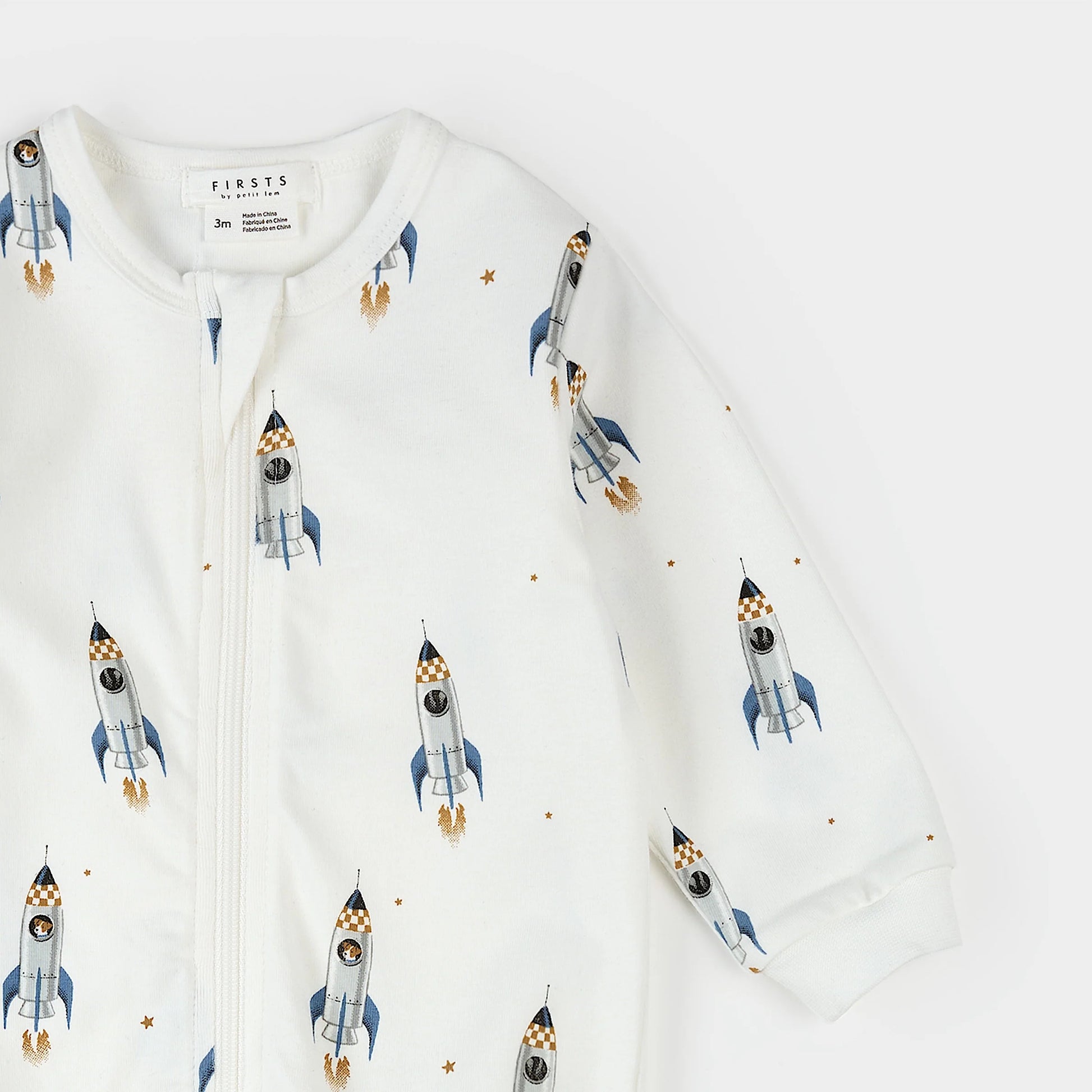 Rocket Print on Off White Footed Sleeper | Petit Lem