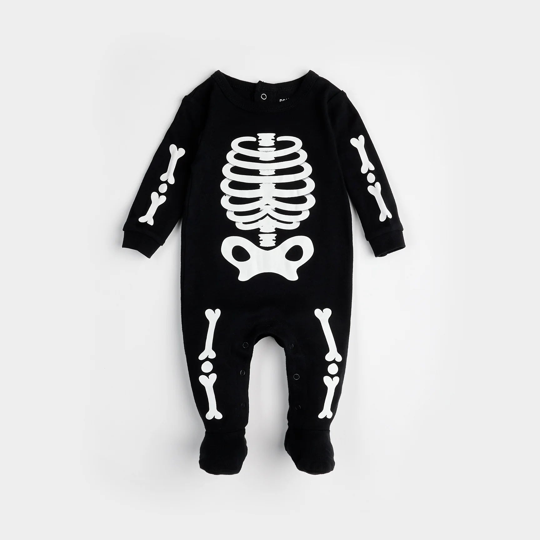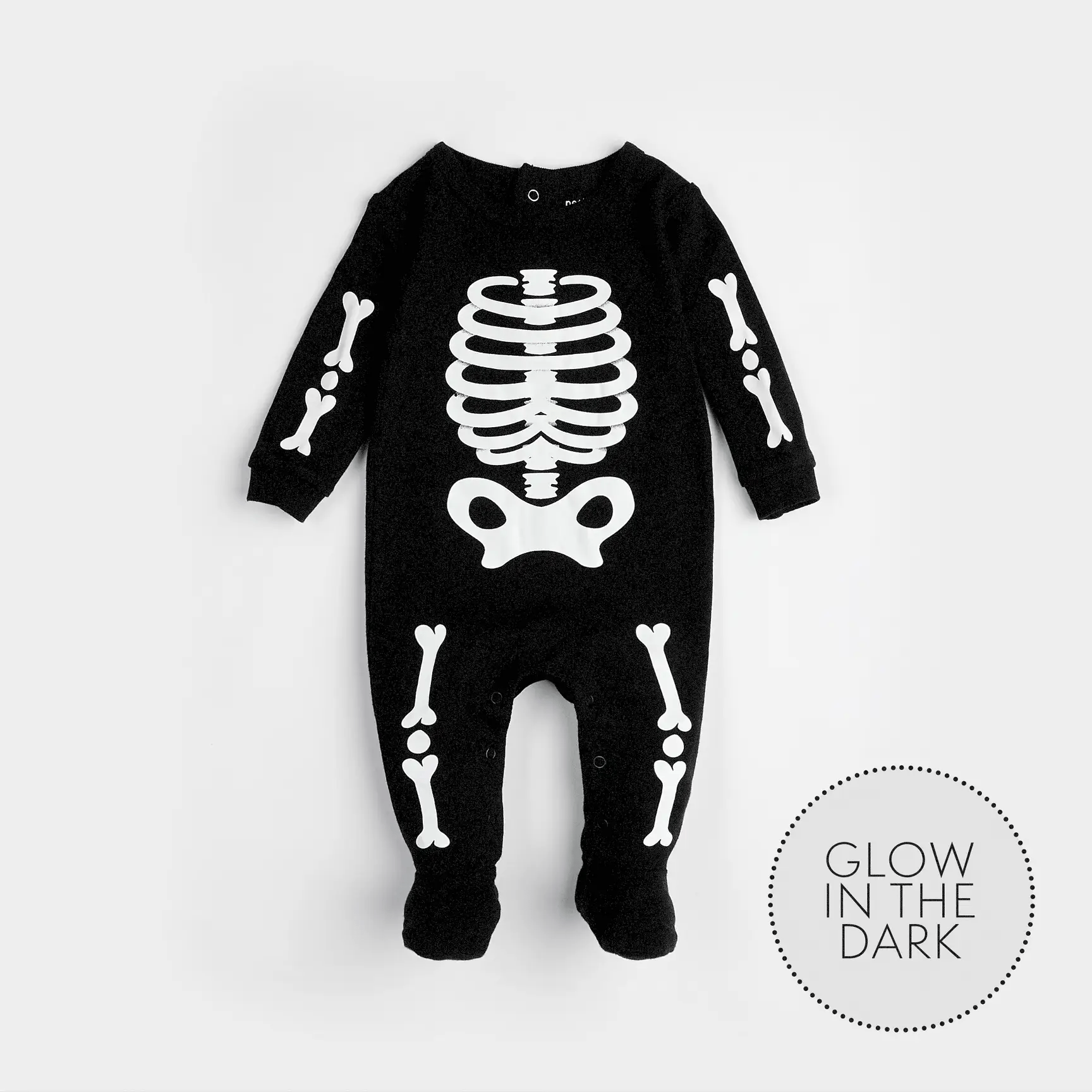Skeleton Glow in the Dark Print on Black Sleeper | Petit Lem