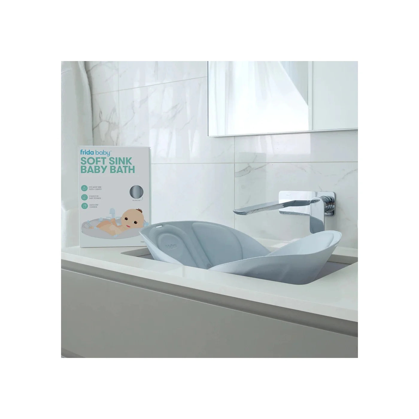 Turn almost any sink into a newborn spa sesh with the Soft Sink Baby Bath, designed to cushion + cradle baby from head to toe. Sides snap together to support a newborn, dries out quickly and folds up for easy storage and travel. Made of quick dry material, the Soft Sink Baby Bath is machine washable - or simply hang to dry. We sink it's pretty neat.