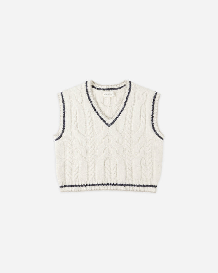 This preppy, boxy-fit Sweater Vest features a classic v-neckline, dropped shoulders, and ribbed trim at the hems for a vintage look.