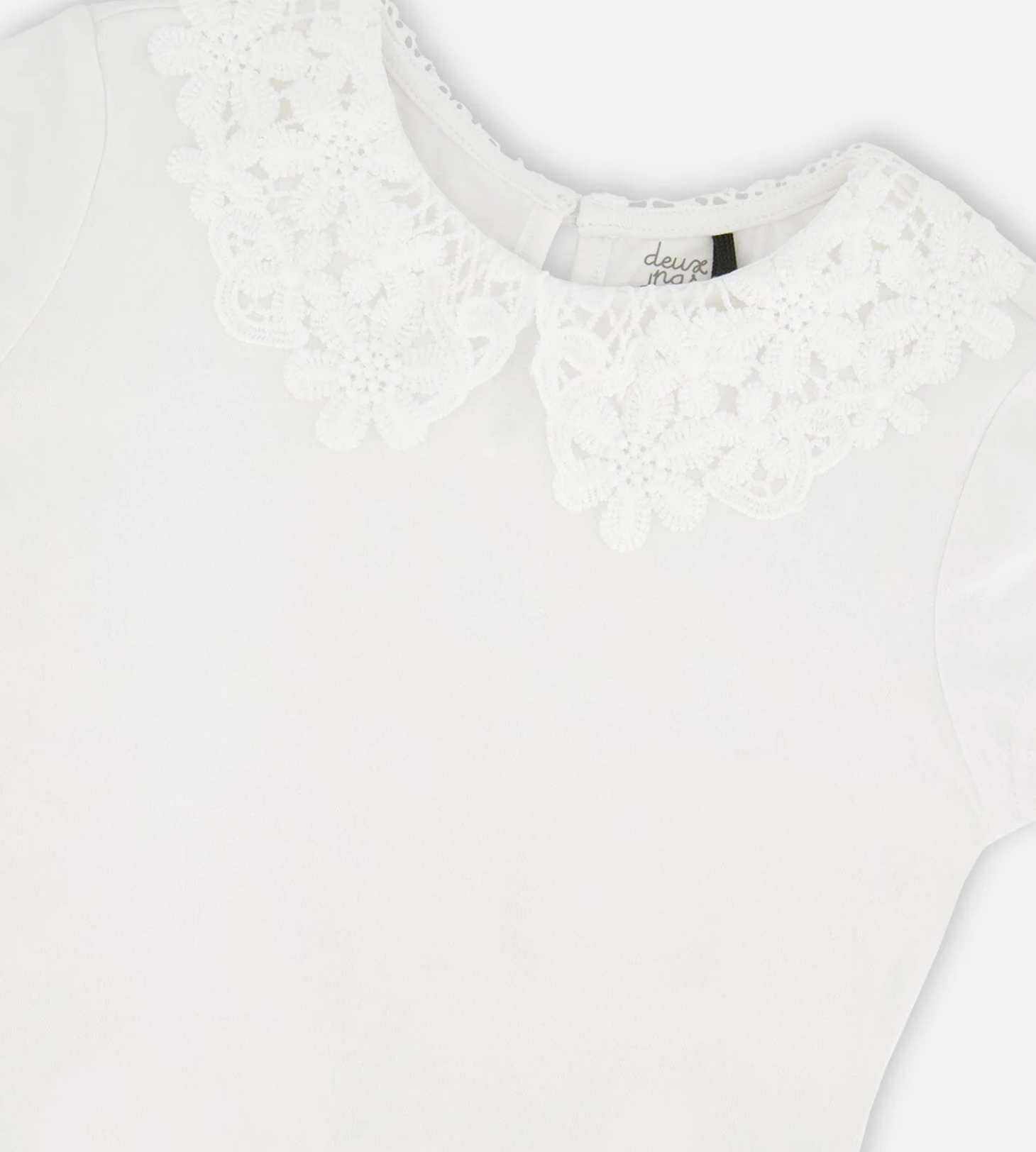 T-Shirt with Crochet Peter Pan Collar | White | Duex par Deux