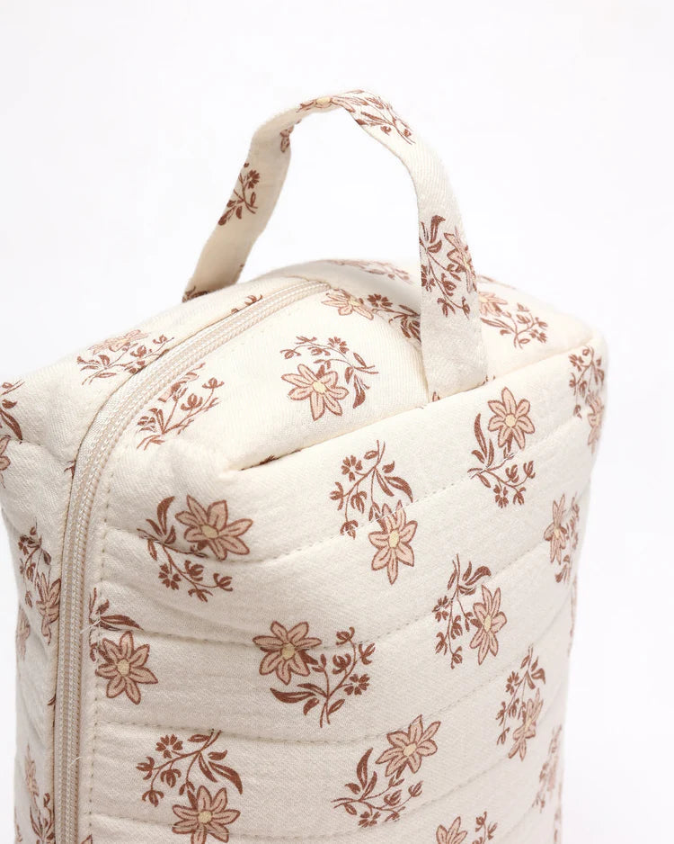 This cute quilted toiletry bag is perfect for storing all your baby essentials on the go. It features a functional zipper and a side handle for easy attachment to our Diaper Bag.