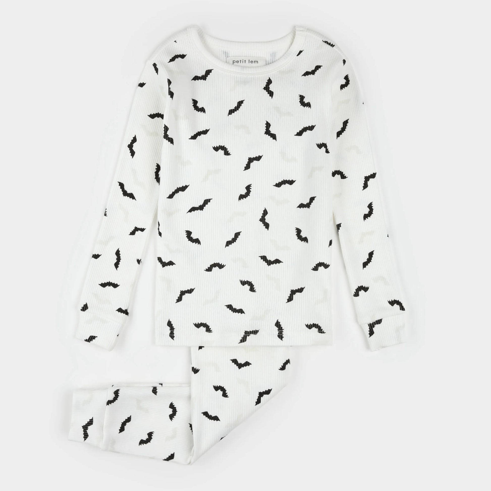 Bats Glow in the Dark Print on Off-White PJ Set | Petit Lem