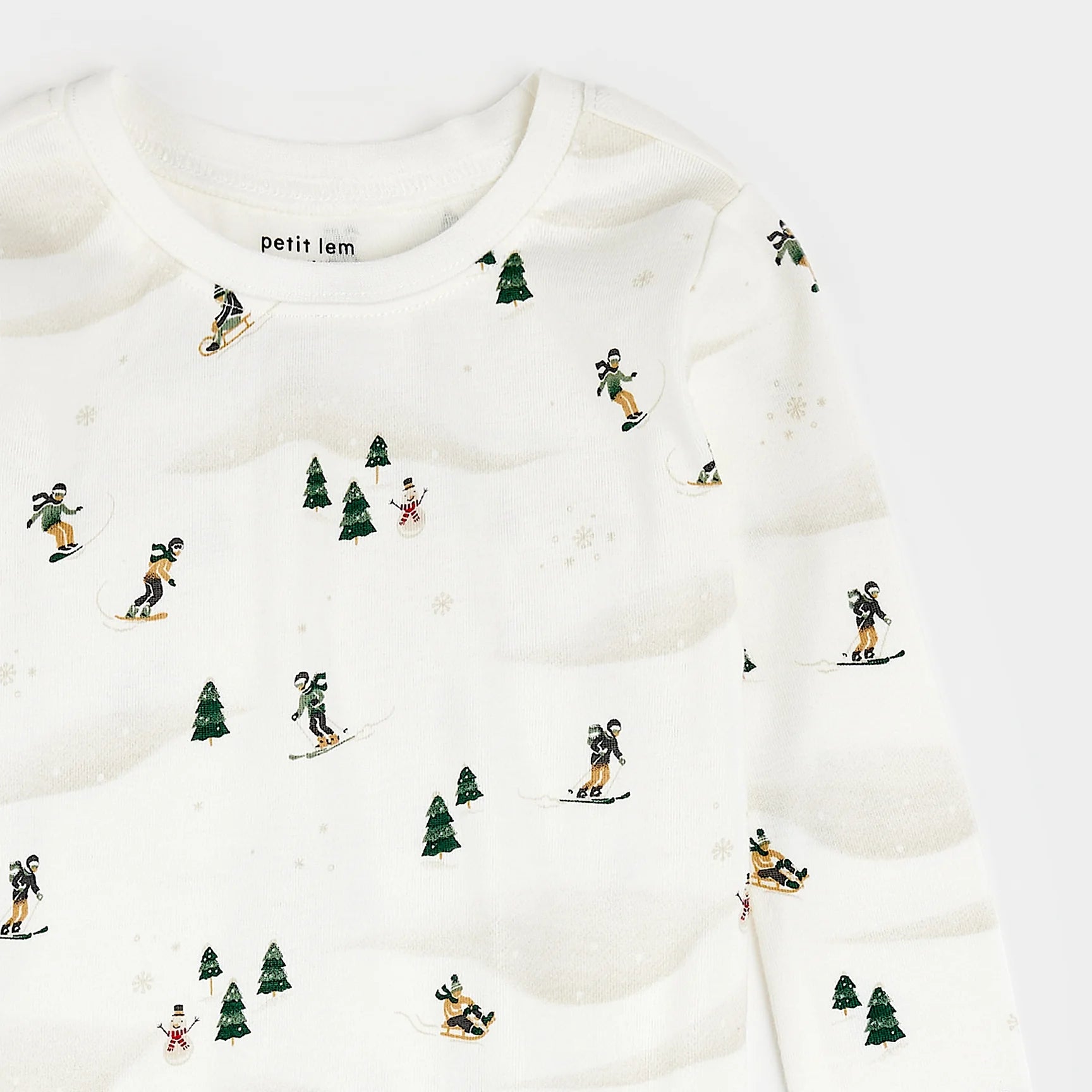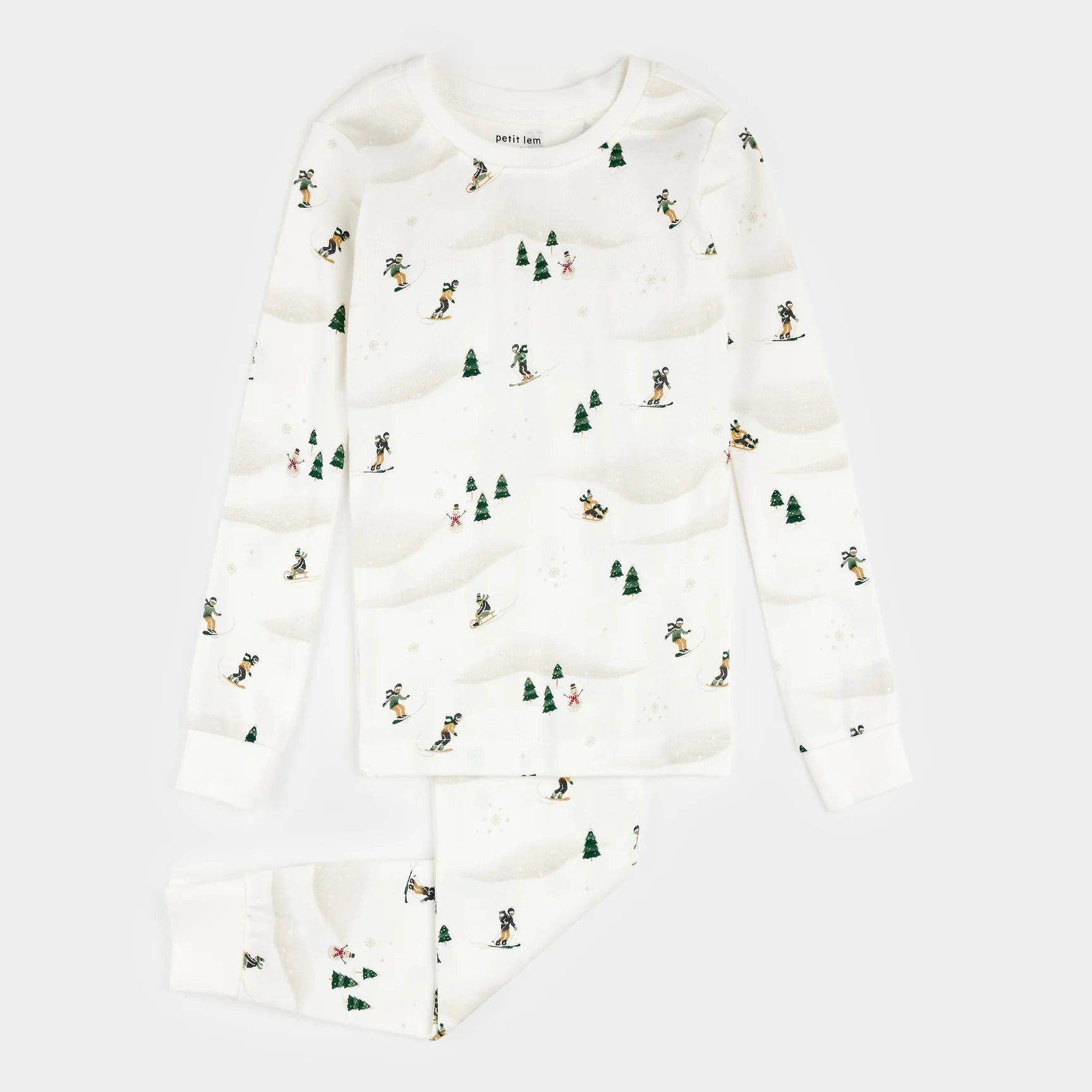 Winter Fun Print on Off-White PJ Set | Petit Lem
